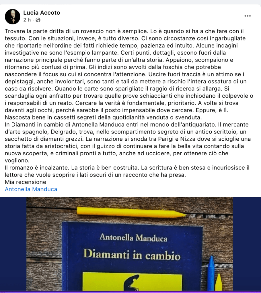 Diamanti in cambio, una recensione di Lucia Accoto, 20 marzo 2024