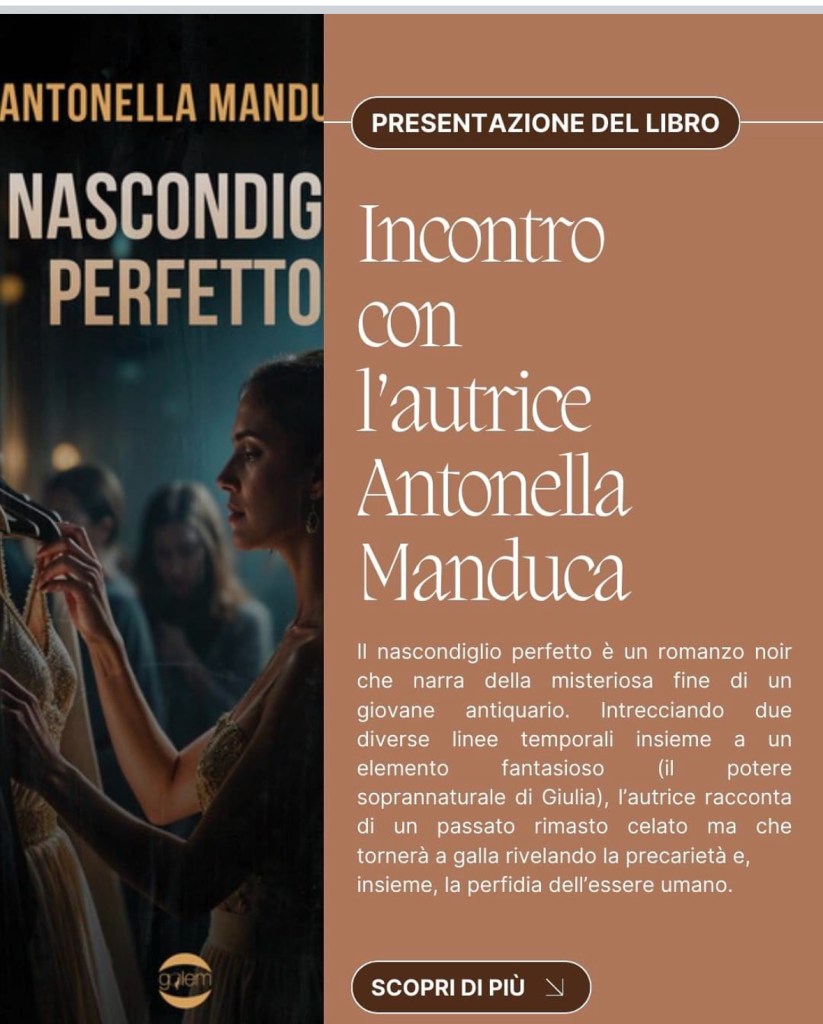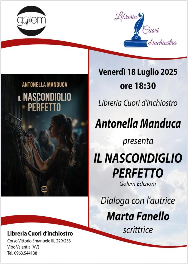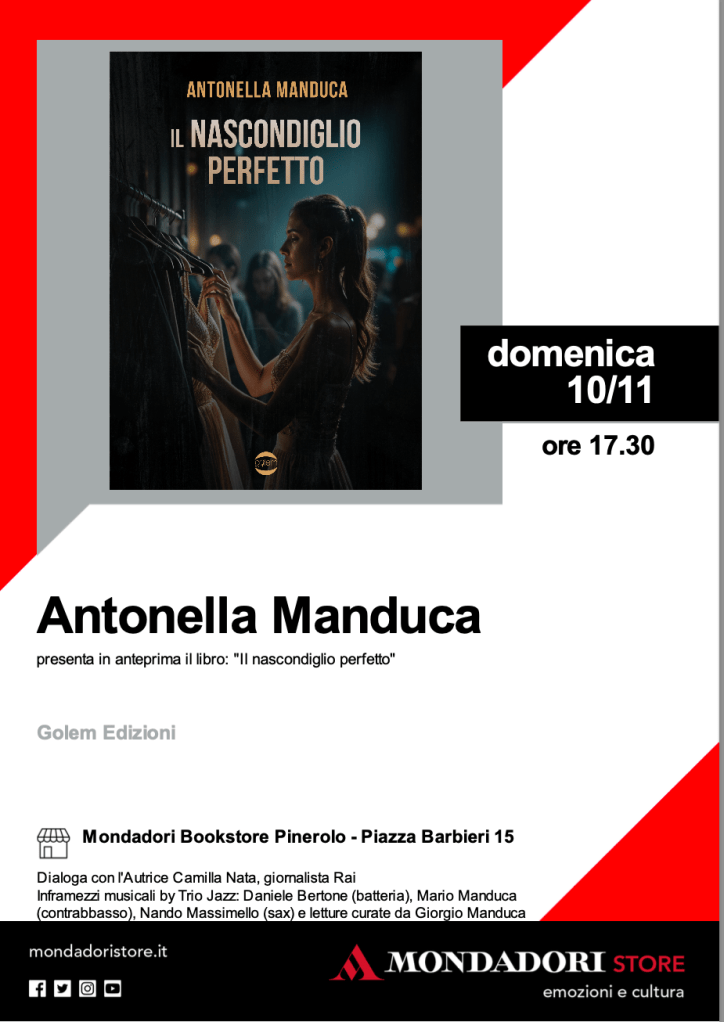 Il primo appuntamento torinese del mio mio nuovo romanzo “Il nascondiglio perfetto “ Golem Edizioni sarà alla Libreria Belgravia , Via Vicoforte 14, il 29 novembre alle 18:30