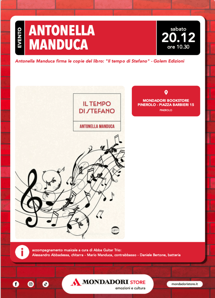 Sabato 20 settembre alle 18 nell’Aula Studio della Biblioteca, Antonella Manduca presenterà il suo ultimo romanzo e l’antologia “365 racconti gialli, thriller e noir”, cui ha contribuito anche una delle organizzatrici del nostro festival, Mara Barbara Rosso.